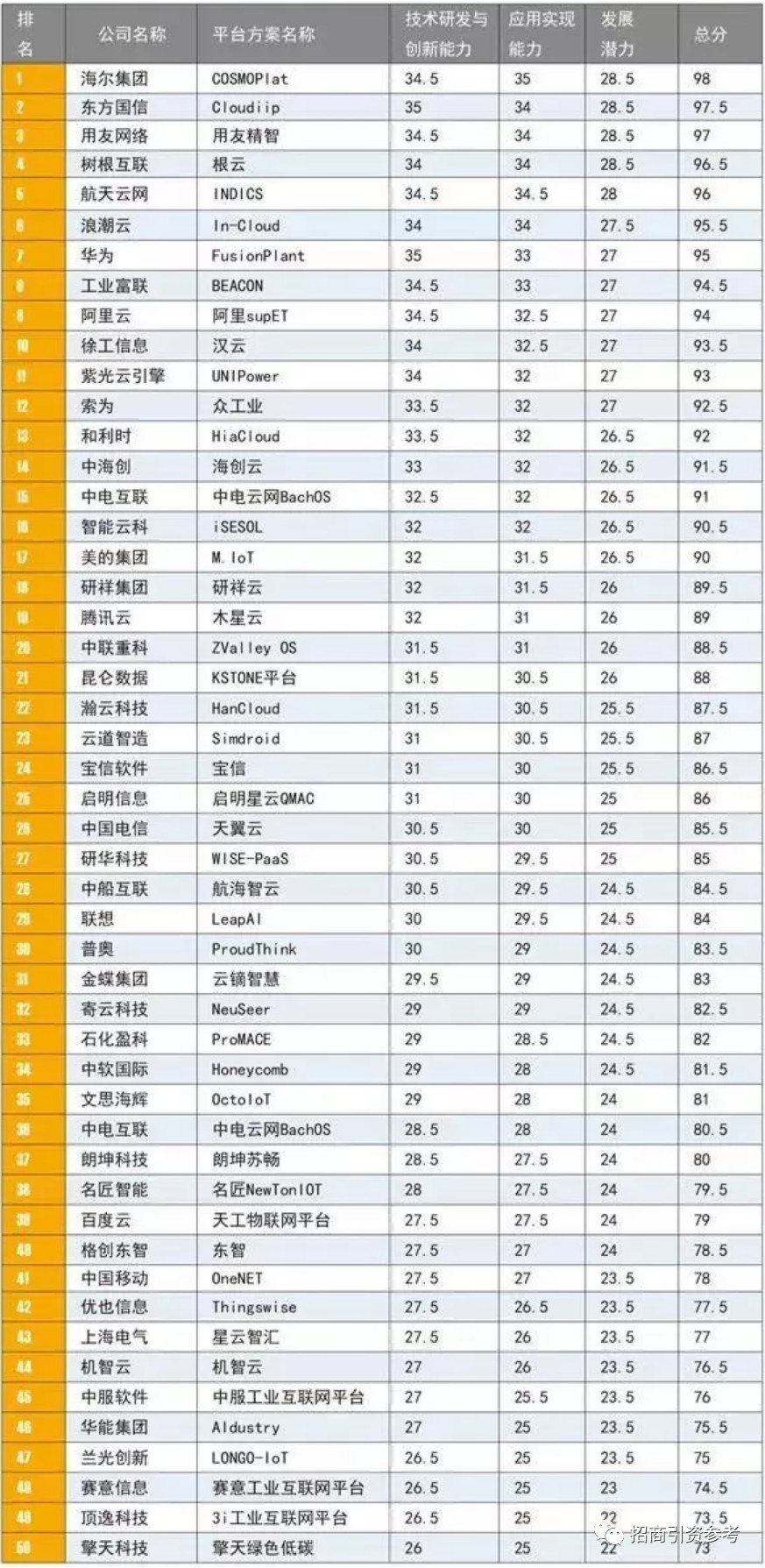 2019工業(yè)互聯(lián)網(wǎng)50強(qiáng)名單: