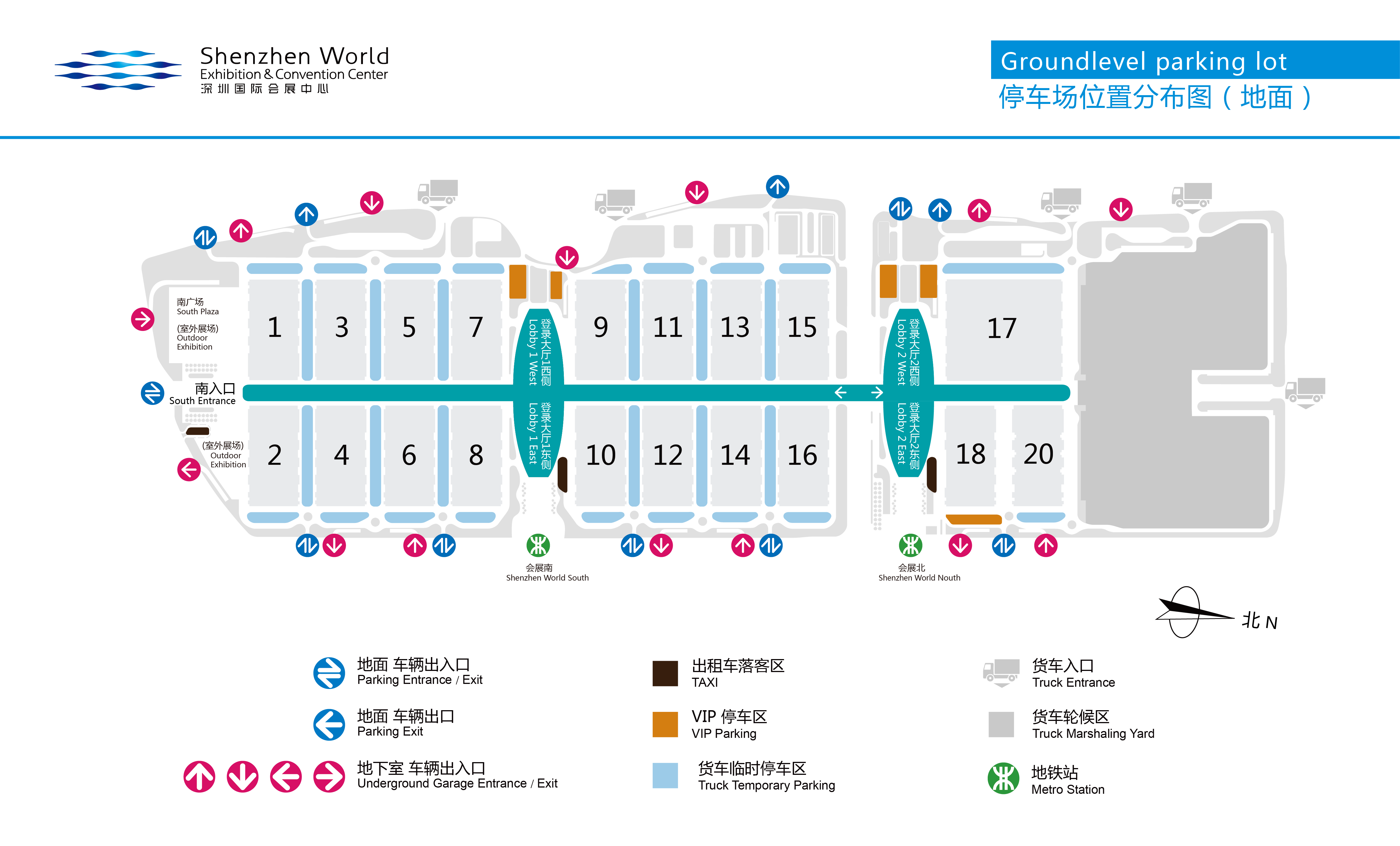 貨車臨時停車區(qū):展廳(除18號展廳)附近均設(shè)貨車臨時停車區(qū),約846個車位;